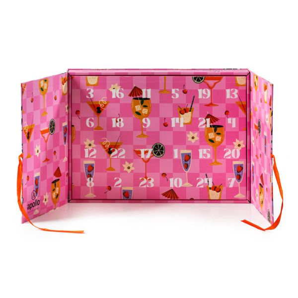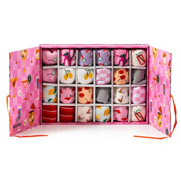 - The Cocktail advent kalender, bevat 12 paar damessokken elk met een uniek cocktail-ontwerp, maat 36-41