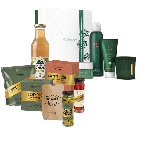 Een feestelijke mix van lekkernijen en een Rituals-pakket waarmee je de perfecte en ontspannen kerstsfeer creëert. Je hebt keuze van Rituals gift sets uit 7 collecties.