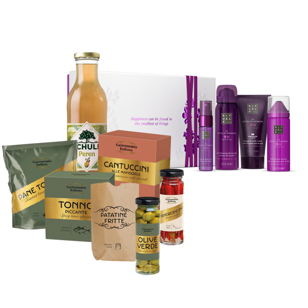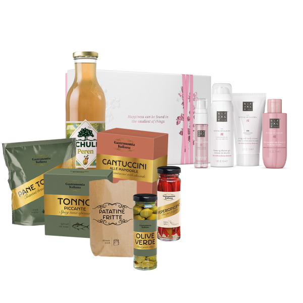 Een feestelijke mix van lekkernijen en een Rituals-pakket waarmee je de perfecte en ontspannen kerstsfeer creëert. Je hebt keuze van Rituals gift sets uit 7 collecties.